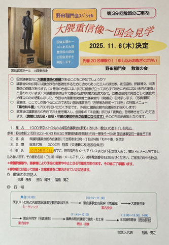 第39回散策の会「大隈重信像〜国会見学ツアー」のお知らせ